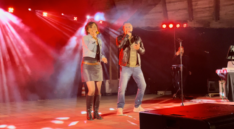 Jörg primär als DJ/ Sänger und ich als Sängerin.